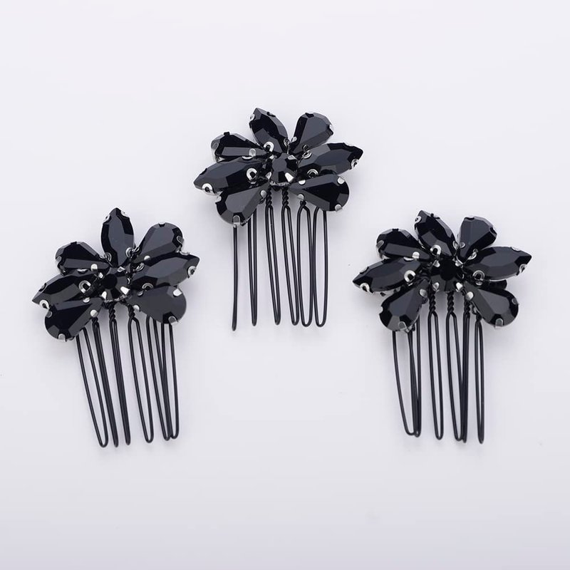 - Women Black Rhinestones Crystal Hair comb Set