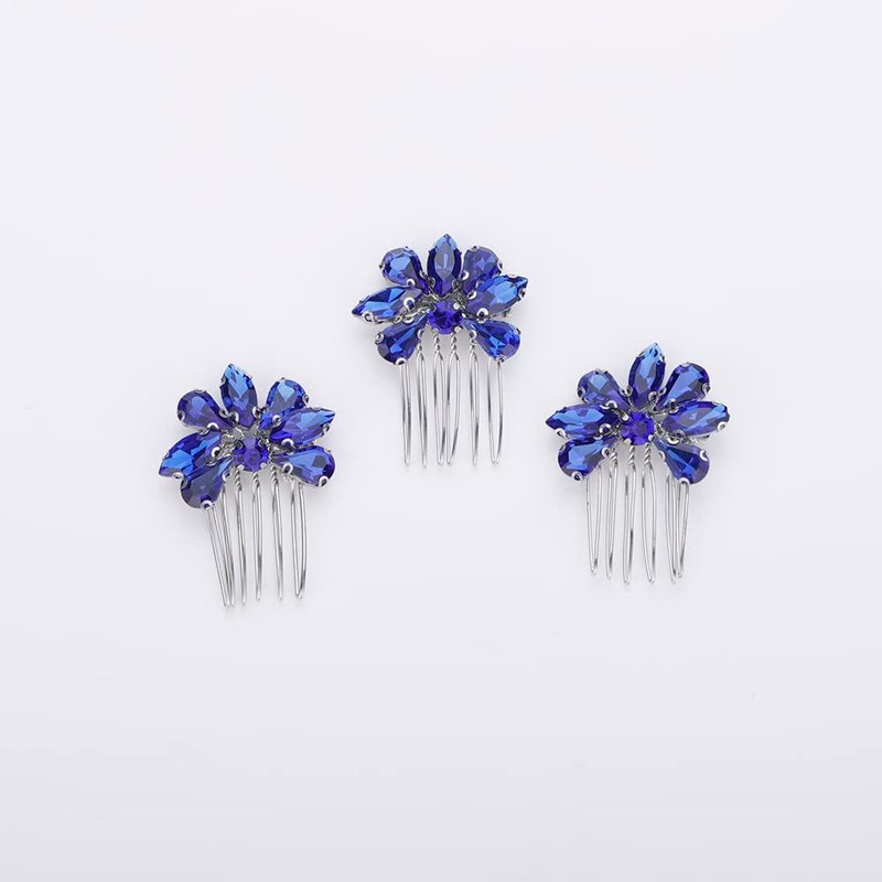 Teyglen Simple Rhinestones Crystal Bride Wedding Hair Comb Set Handmade Red Blue Black Crystal Side Hair Combs Bridal Hair Jewelry Set for Women Bride Girls (Blue)