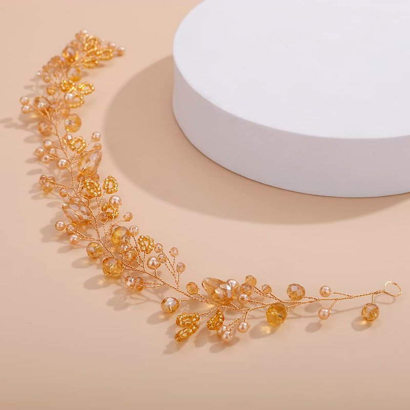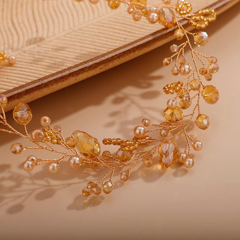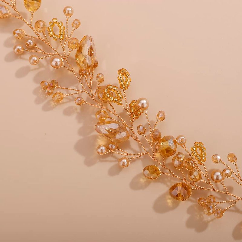 - Dainty Women Champagne Crystal Rhinestones Beads Headband Hair Vine