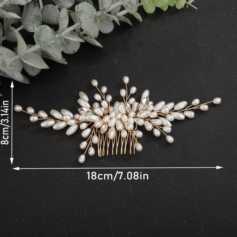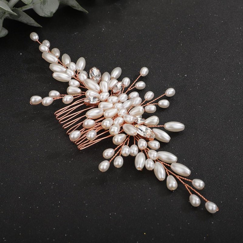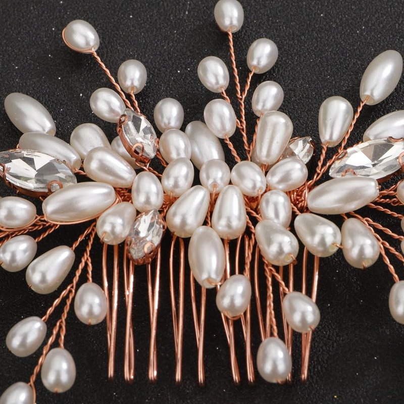 Teyglen Wedding Hair Comb Bridal Pearl Hair Comb with Rhinestone Vintage Pearl Headpieces Handmade Rose Gold Pearl Beads Crystal Hair Pieces Hair Accessories for Women Bride Girls (Rose Gold)