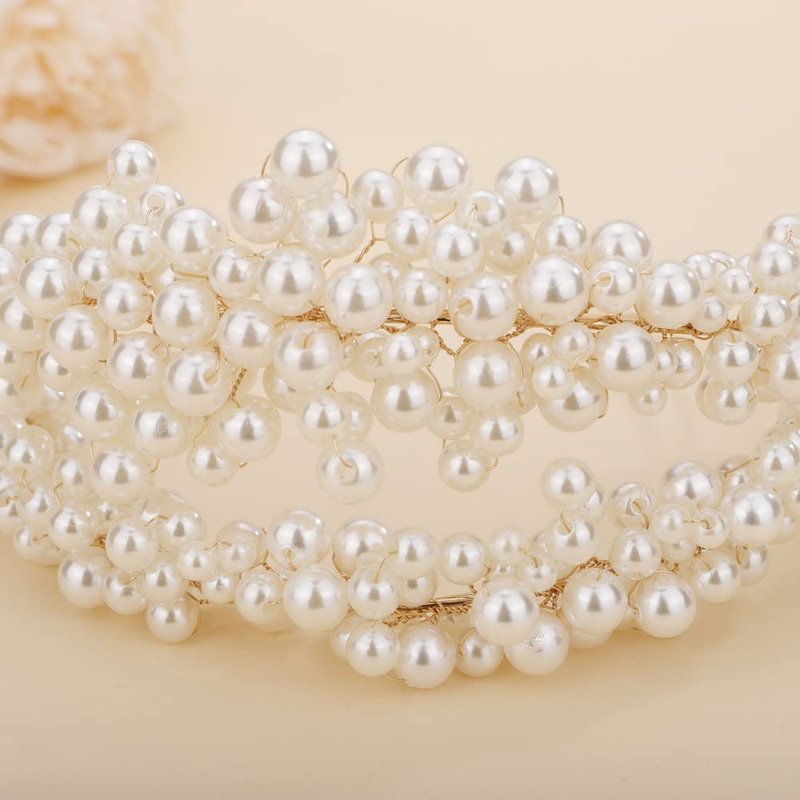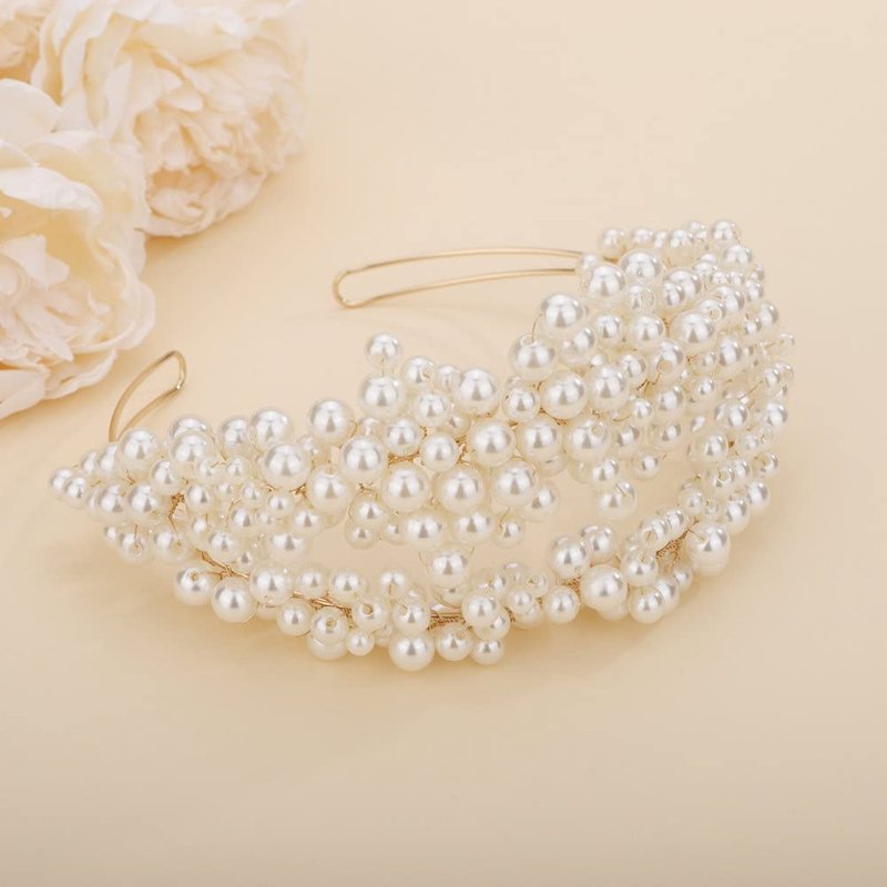 Teyglen Wedding Pearl Headband Bridal Pearl Beads Tiara Crown Floral Princess Hair Crown Hair Pieces Hair Accessories for Women Bride Prom Birthday Party (Ivory)