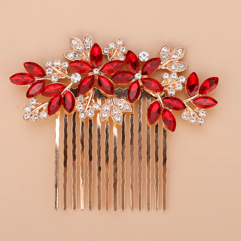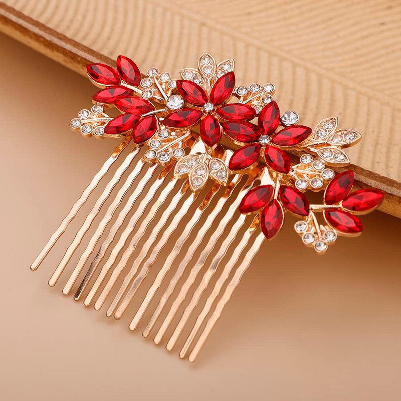 Teyglen Women Dainty Silver Gold Green Rhinestones Bride Wedding Hair Comb Luxurious Hair Accessories Shiny Red Blue Rhinestones Bridal Side Hair Combs for Women Bride Girls (Gold Red)