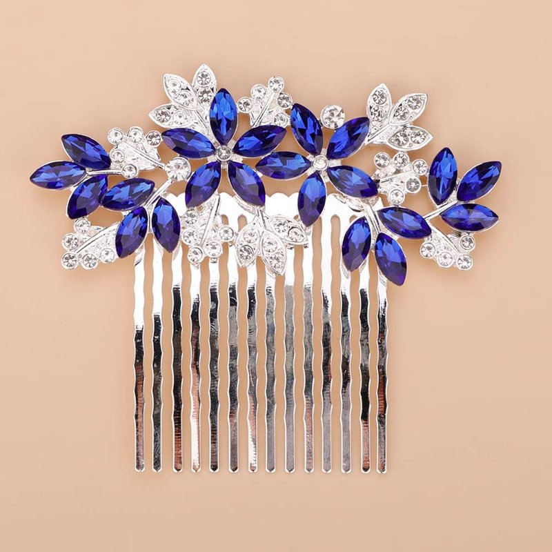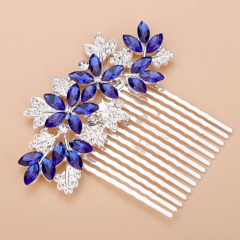 Teyglen Women Dainty Silver Gold Green Rhinestones Bride Wedding Hair Comb Luxurious Hair Accessories Shiny Red Blue Rhinestones Bridal Side Hair Combs for Women Bride Girls (Silver Blue)