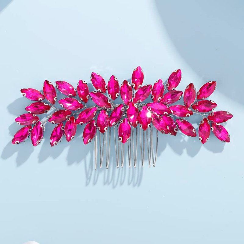 Teyglen Women Dainty Simple Full Rhinestones Bride Wedding Hair Comb Luxurious Hair Accessories Shiny Rhinestones Bridal Side Hair Combs for Women Bride Girls (Rose Red)