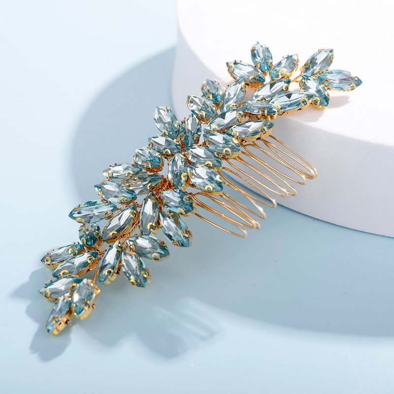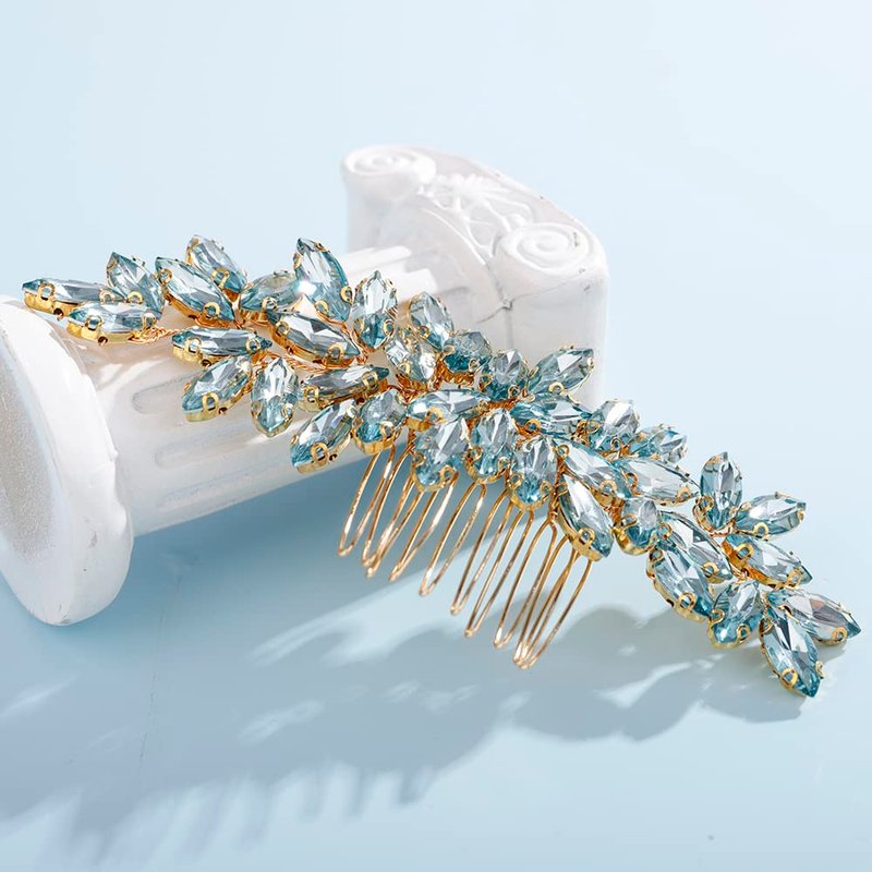 Teyglen Women Dainty Simple Full Rhinestones Mint Blue Bride Wedding Hair Comb Luxurious Hair Accessories Shiny Rhinestones Bridal Side Hair Combs for Women Bride Girls (Mint blue)