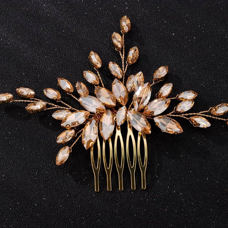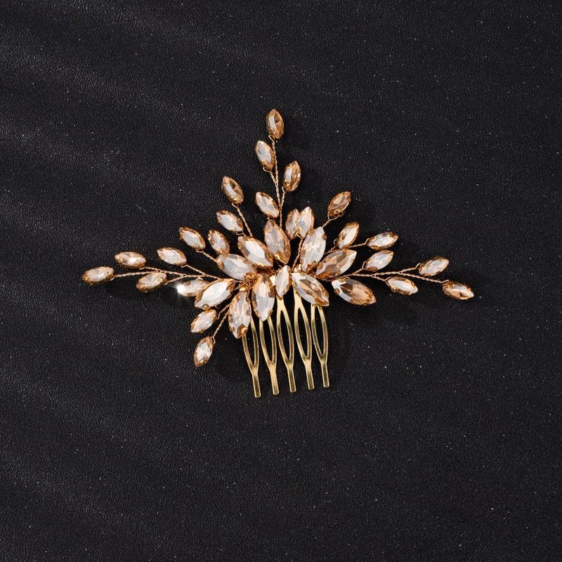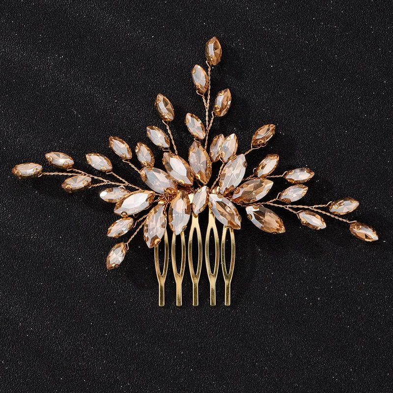 Teyglen Women Dainty Simple Full Rhinestones Red Blue Black Bride Wedding Hair Comb Luxurious Hair Accessories Shiny Rhinestones Bridal Side Hair Combs for Women Bride Girls (Champagne)