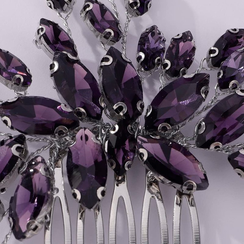 Teyglen Women Dainty Simple Full Rhinestones Red Blue Black Bride Wedding Hair Comb Luxurious Hair Accessories Shiny Rhinestones Bridal Side Hair Combs for Women Bride Girls (Purple)