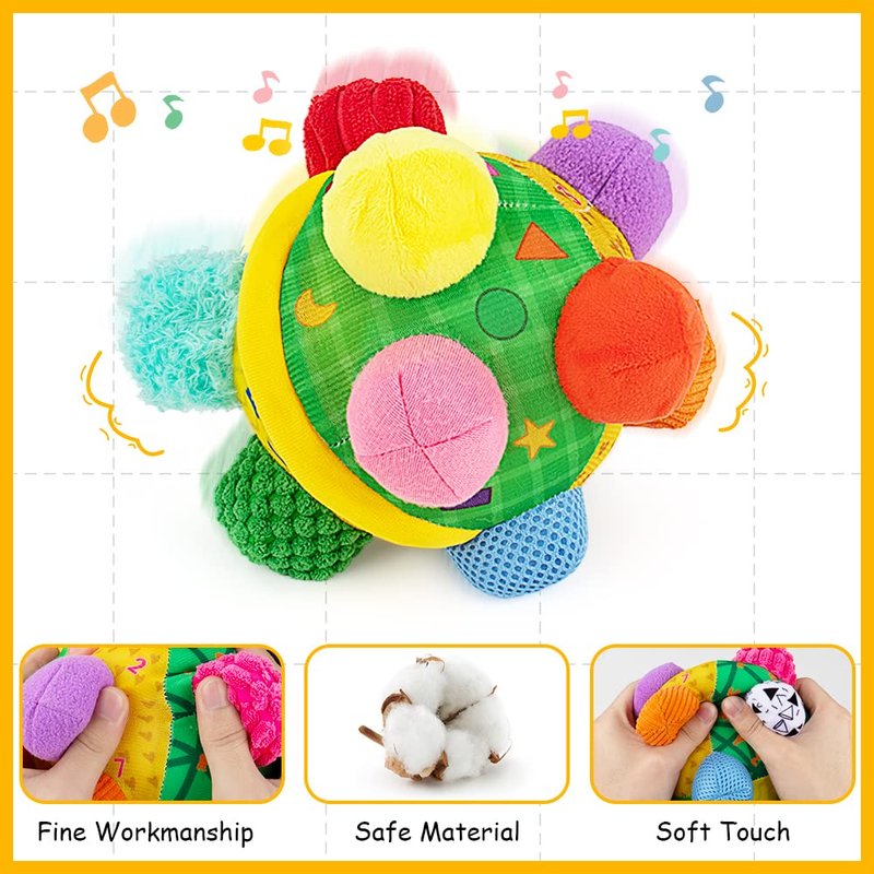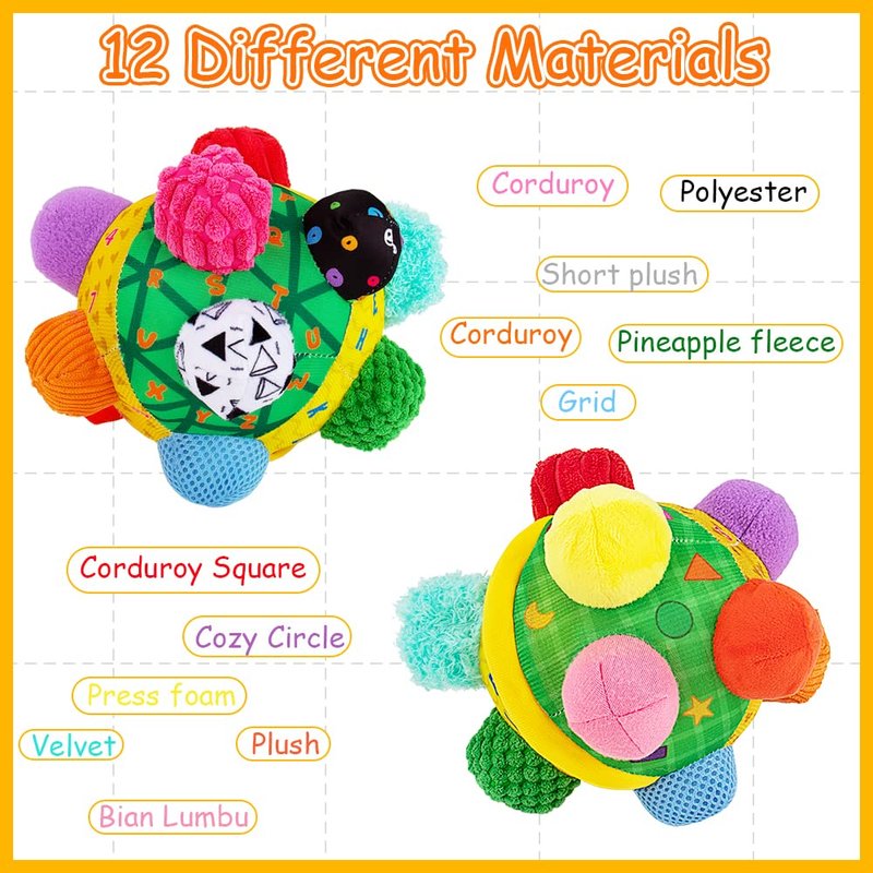 - 【Fine Motor Skills Baby Toys for 1 Year Old and Up】High-contrast colors and simple graphics of the dancing ball keep baby focused, and the raised ball uses a variety of textures and materials to develop tactile sensitivity and fine motor skills.The vibration tracks and bumps encourage reaching,grasping,and moving,which can train children's eye-hand coordination and balance.