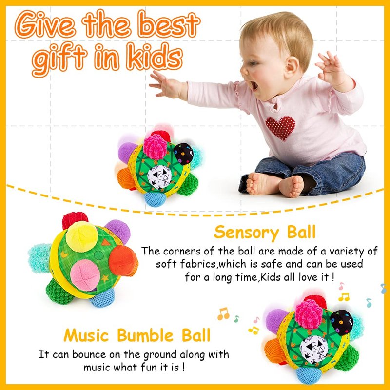 - 【Developmental Music Bouncing Ball Toys】This fun bumble ball toy vibrates erratically and makes fun music to engage curious babies and toddlers to crawl, follow and keep moving. Upbeat music and unpredictable vibrations keep babies entertained for hours.Dancing ball toys encourage childrens to explore and recognize new things.