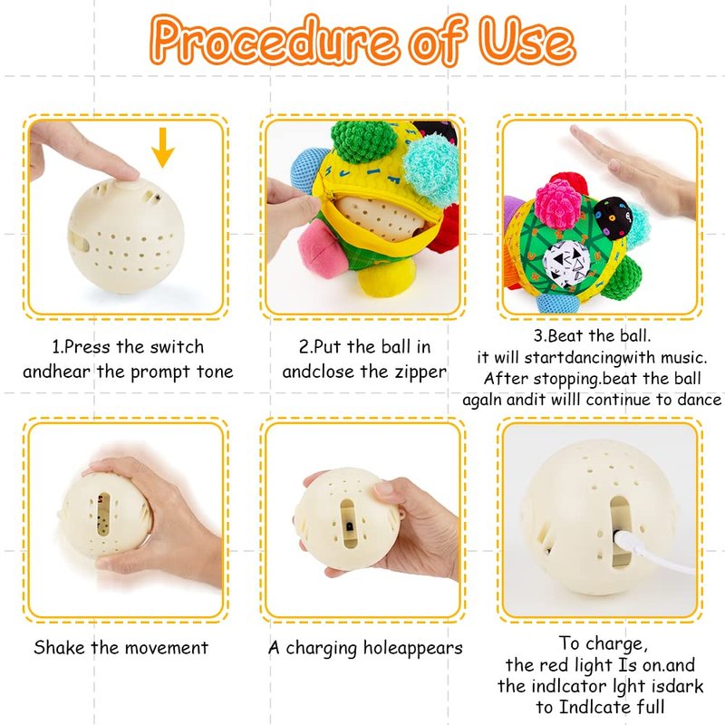 - 【Easy to Use and Clean】Take out the charging ball and press the switch to hear a beep, then put the charging ball into the cloth ball and shake it to use. For charge,use the charging cable to move the inner core of the charger until you see the charging hole. Then charge it for a few hours. (Product Guide and Documents on the details page).Our baby music sensory ball can be machine washed, please note to take out the inner core before washing.