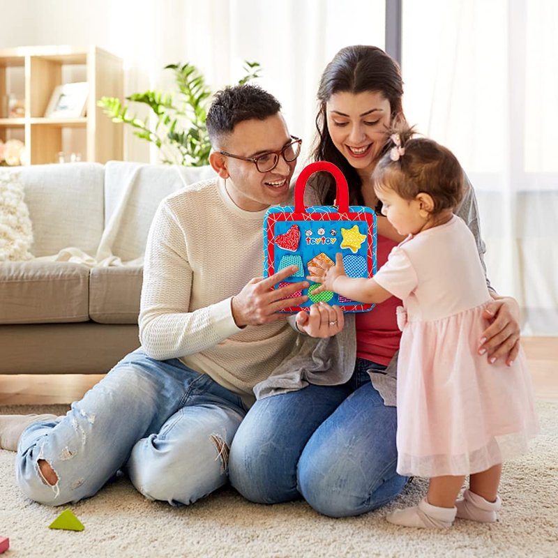 - 【Shape Sorter Toys 】One side of montessori educational toys is paired with blocks of different colors and shapes, and on the other side is built-in rattling paper of different shapes,The four sides of the bag are also equipped with English letters in different colors.Our colorful baby sensory toys are manufactured with toxic-free, and safe material ,which makes them safe for kids.
