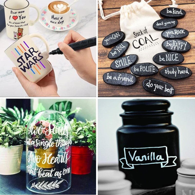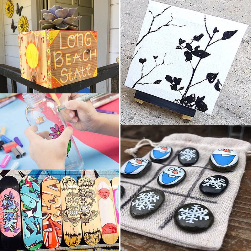 Acrylic paint marker pen used for decorative painting, artistic creation, and general craft painting projects. It can be used on almost any surface. Including Wood Plastic Rock Leather Glass Stone Metal Canvas Ceramic etc.