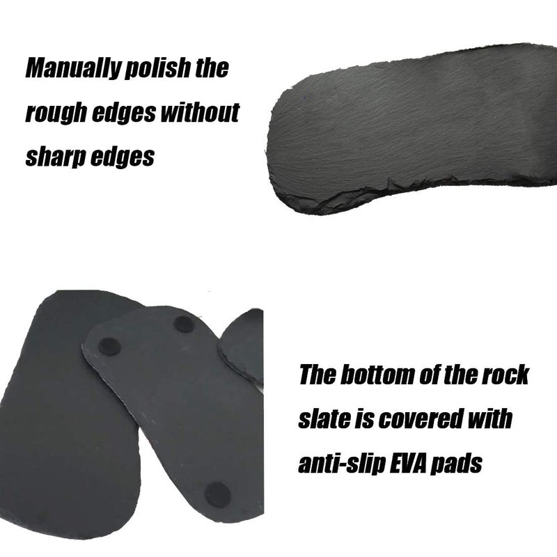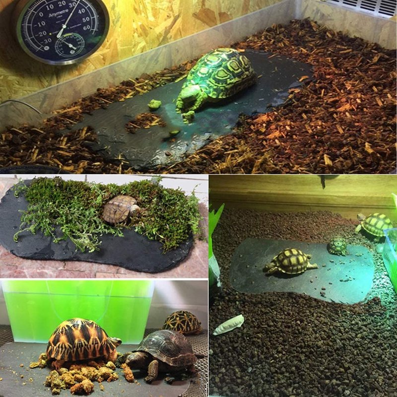 - KEEP WARM -- It can be placed under the sun lamp or basking bulb to absorb heat to keep a comfortable temperature.Natural rocks absorb heat to keep them warm . The bottom of the rock slab is designed with four EVA pads to prevent slip .