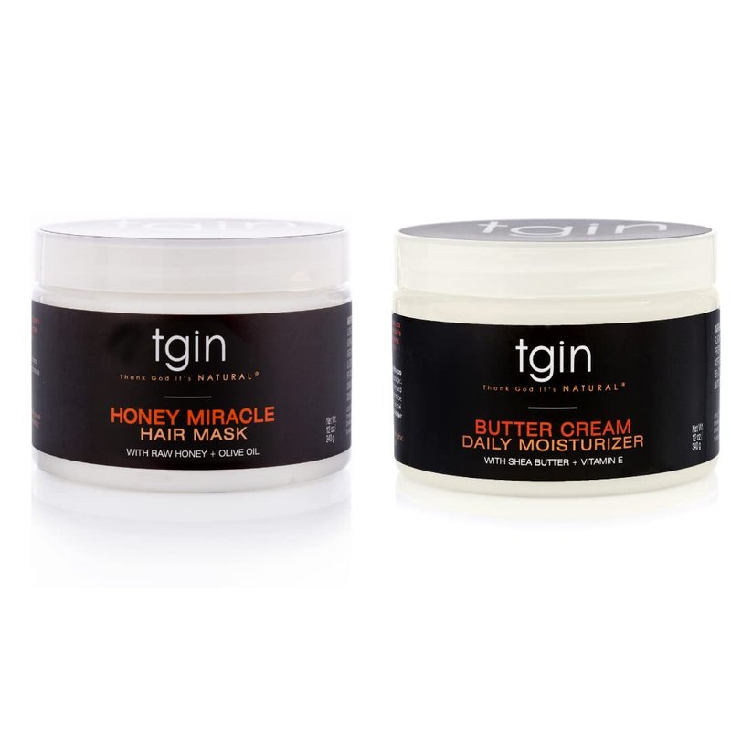 tgin Butter Cream Daily Moisturizer and tgin Honey Miracle Hair Mask Deep Conditioner Duo - Dry Hair - Curly Hair - Type 3c and 4c hair - Styler - 12 Oz - PACK OF 2 (One of each)