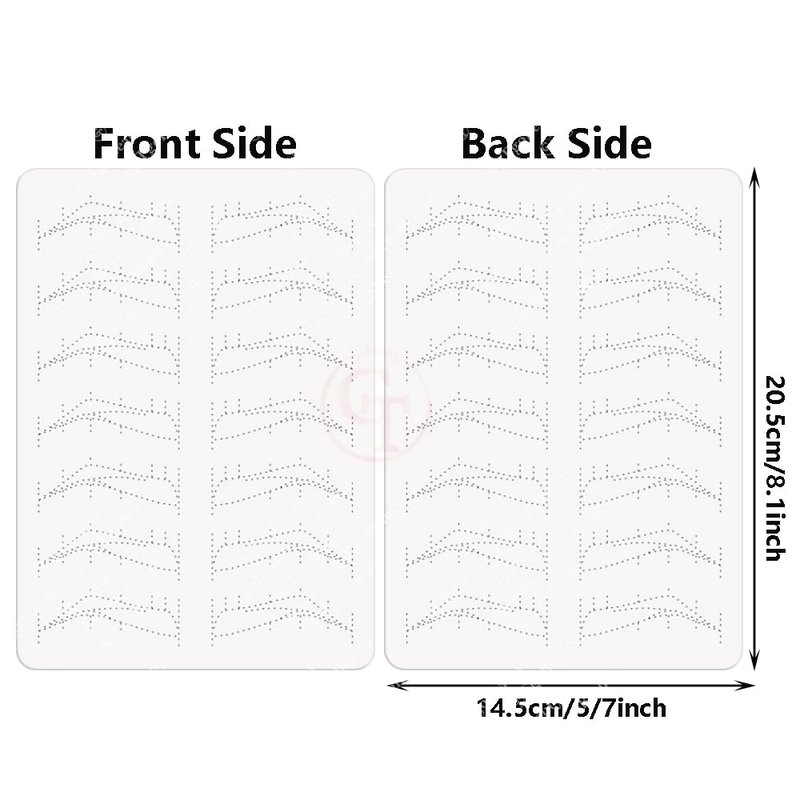 - Nano Brow Silicone Practice Skin: Empty brow shapes with thin tracer dots. Can be use to practice any brow technique.