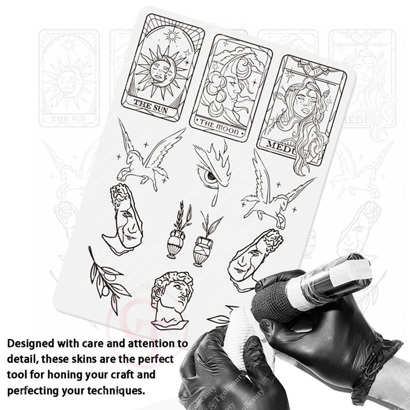 The TgoBeauty Tattoo Practice Skin with light gray outline, fine line tattoo practice pad for training to improve the tattoo skills.