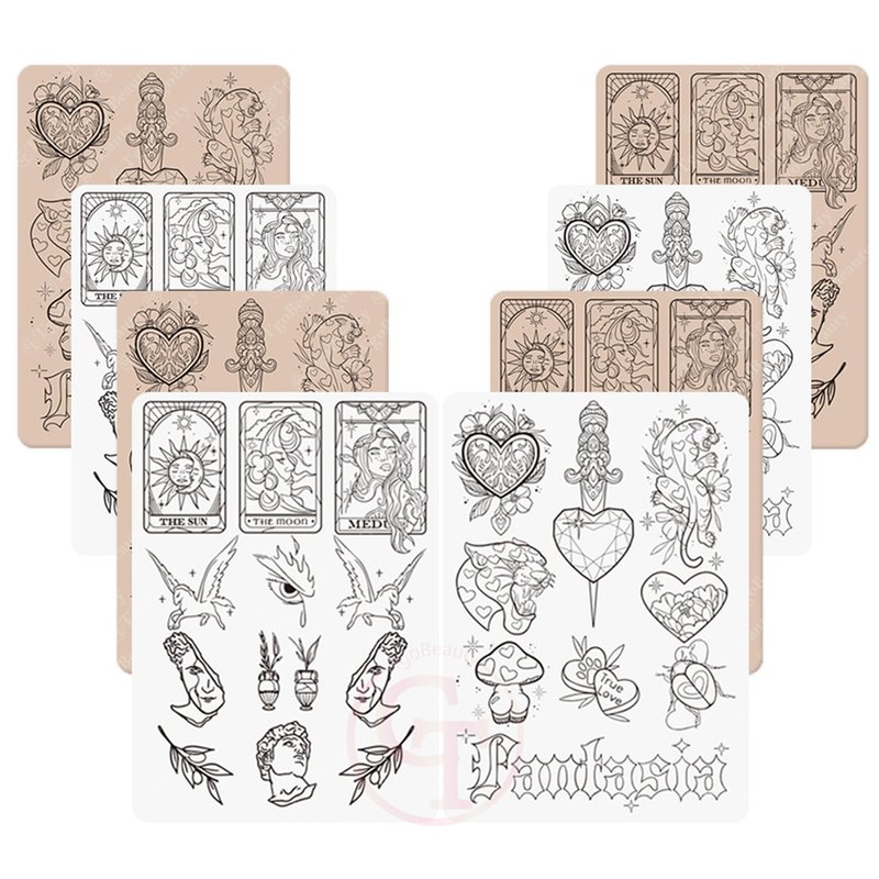 - Double Sided Tattoo Practice Skin: easy wipe, 2 sides designed fine line tattoo practice skins feature over 20 different stencil designs.