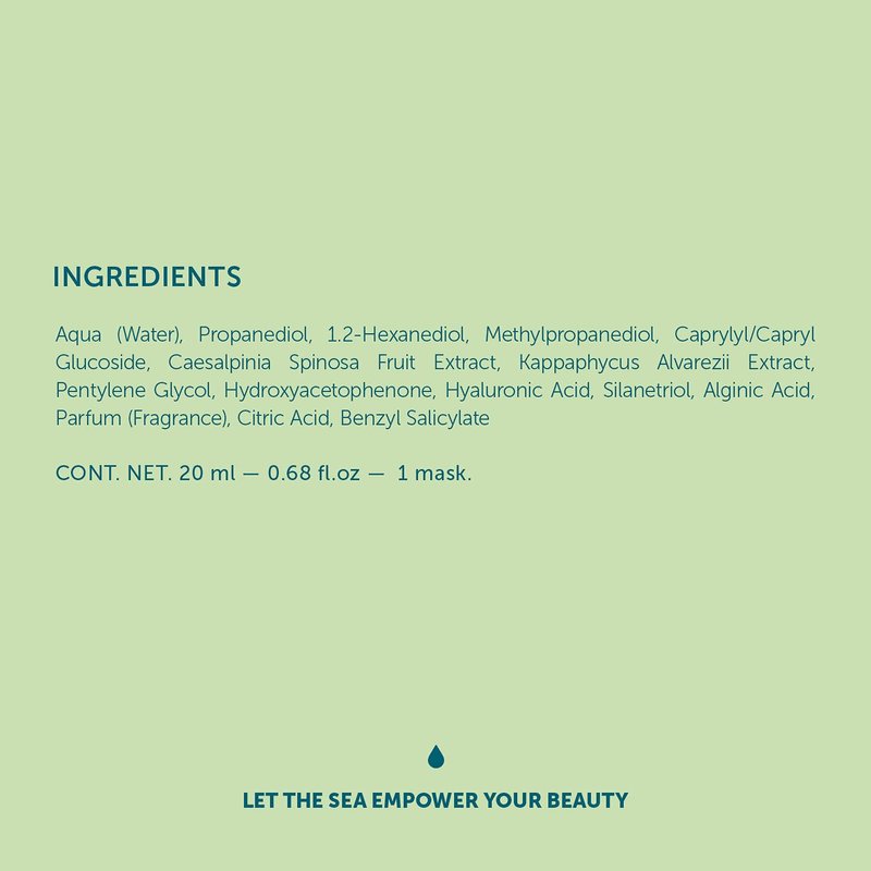 - Let the Sea Empower Your Beauty - Infused with marine silicon, seaweed sugar and seaweed fibers, this marine mask fills and smooths out the skin; The flash lift shot mask is made with 96% of natural ingredients; Perfect to rejuvenate and tighten up your skin