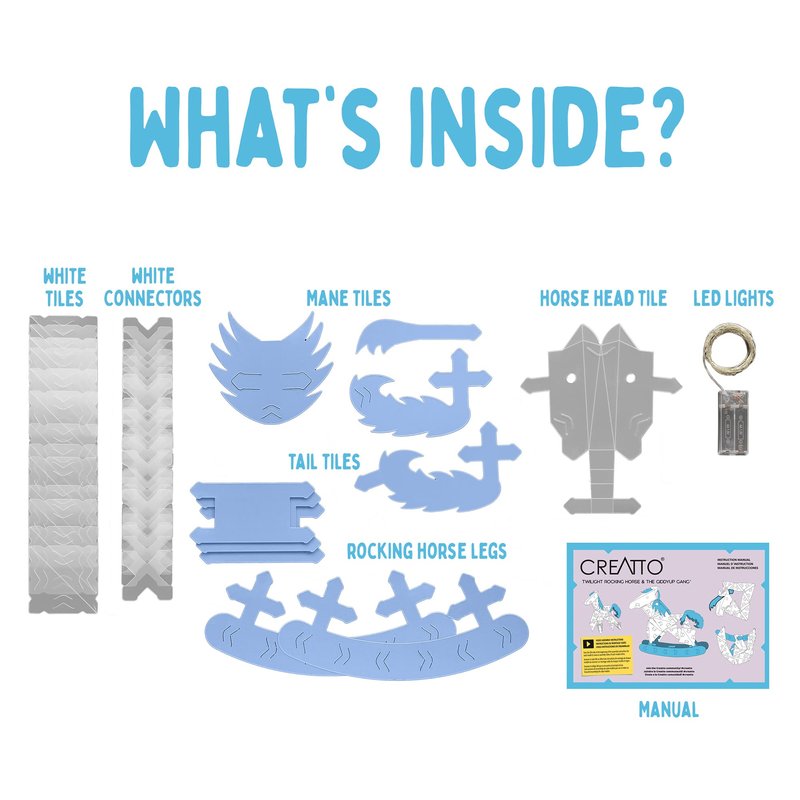 Thames & Kosmos Creatto Twilight Rocking Horse & The Giddyup Gang Light-Up 3D Puzzle Kit, Includes Creatto Puzzle Pieces to Make Your Own Illuminated Craft Creations, DIY Activity & LED Lights