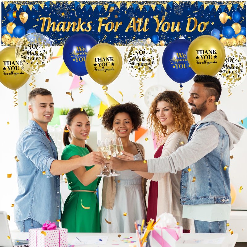 - ✨Ideal for an Appreciate Party: These Thanks for All You Do decorations are numerous and beautifully designed. Appreciate garden banners with shiny party elements and balloons with appreciate themed logos add to the party atmosphere and make your party exciting and fun