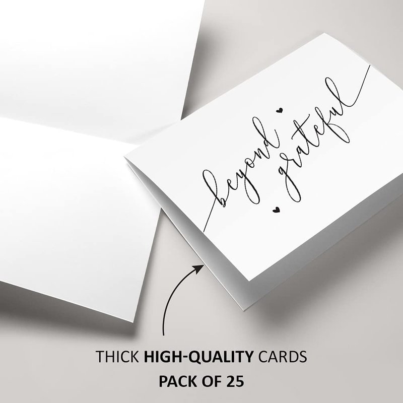 - 25 pre-scored cards: With 25 Pre-scored thank you note cards, all you have to worry about are the words within. Whether sending to friends, family or perhaps customers, your thank you notes with envelopes provide you with the perfect amount.