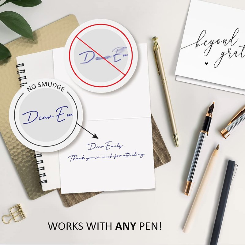 - Premium card stock: Made from high-quality card stock, your recipient will feel the quality of your thank you card and know it’s a touch above the rest. Don’t just send store bought thank you notes they’re used to receiving.