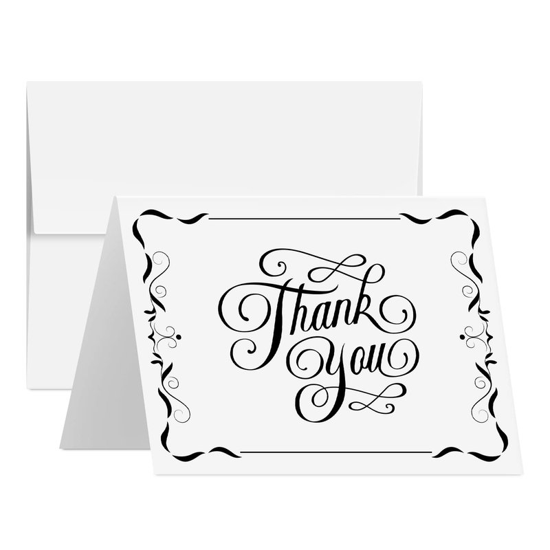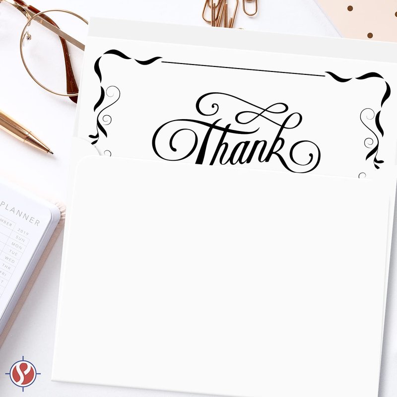 Thank You Greeting Cards and Envelopes – Elegant Fold Over Greetings for Wedding, Christmas, Valentine’s, Bridal Shower, Anniversary – Blank Inside | 4.5 x 5.5” (A2 Size) | 25 per Pack