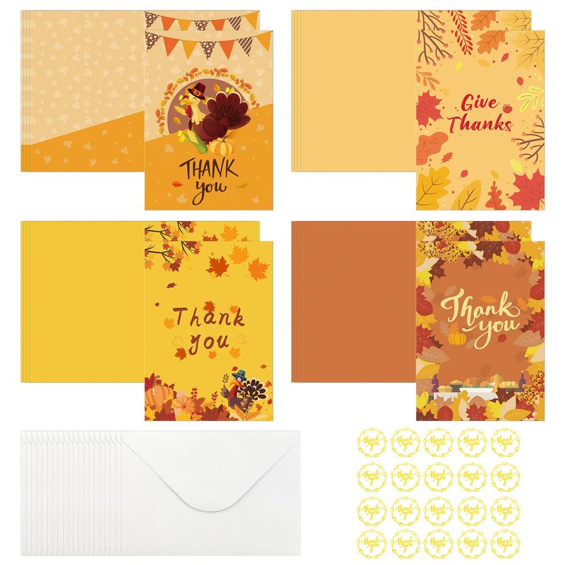 Our thanksgiving greeting cards have 4 unique designs, including envelopes and stickers, and can be kept for a long time.