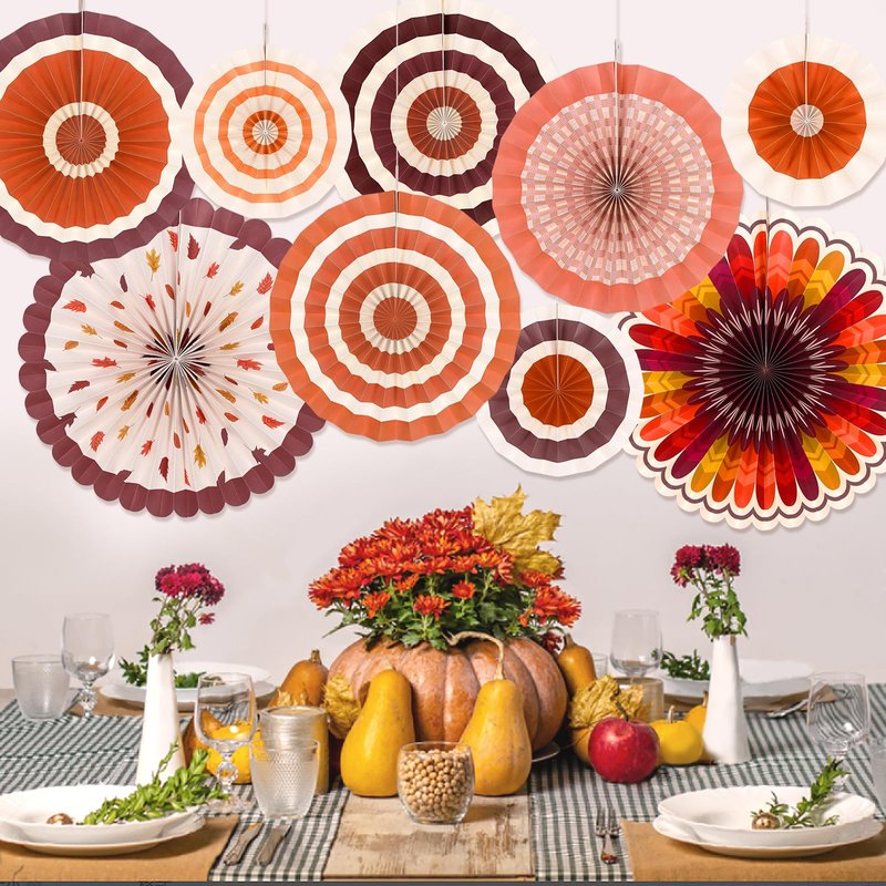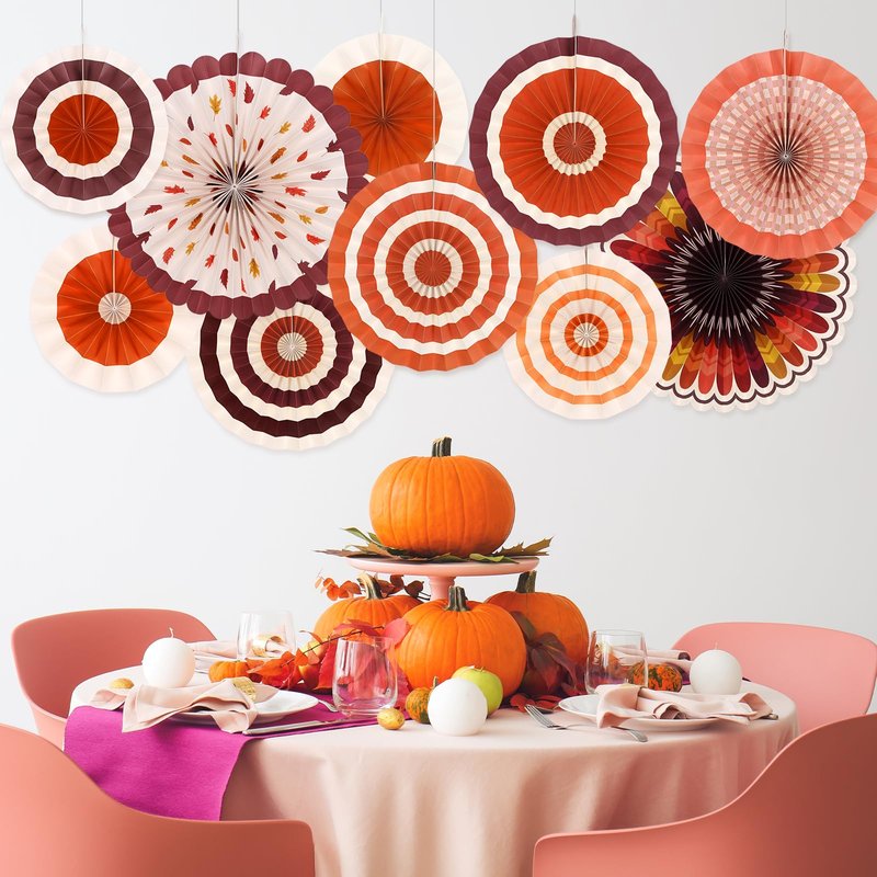 - Transform Your Space for Autumn: Elevate your fall party decorations with our exquisite set of 10 Thanksgiving paper fans. Designed to captivate, these fans blend durability with style, ensuring they maintain their shape without easily wrinkling. Perfect for a brilliantly festive ambiance indoors, they are your go-to Thanksgiving decorations.