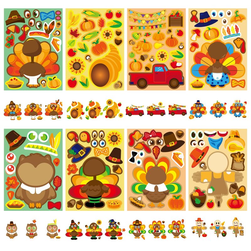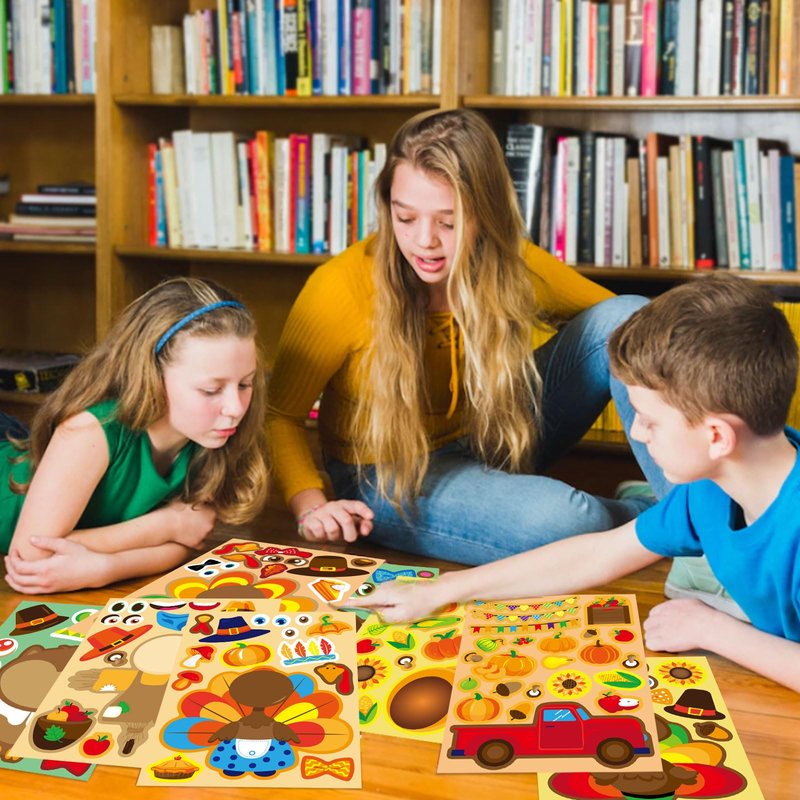 - 🦃Thanksgiving Activities Games for Kids: Our Thanksgiving stickers are designed for multiple uses. The magical stickers can be gently peeled, lifted, and re-stuck, each time resulting in a one-of-a-kind design. Decorating your fall party becomes effortless, and even toddlers can create captivating Thanksgiving crafts stickers independently.
