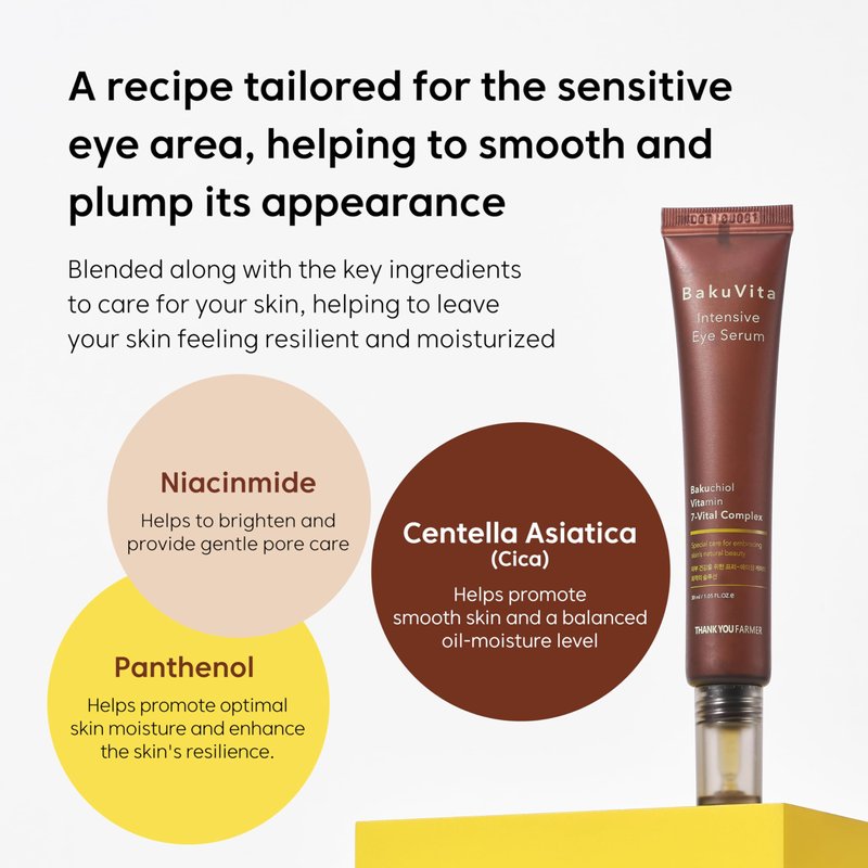 THANKYOU FARMER BakuVita Intensive Eye Serum - Retinol Alternative Bakuchiol, Vitamin C Eye Cream, Vitamin E, Korean Eye Cream for Fine Lines 1.05 Fl oz (30ml)