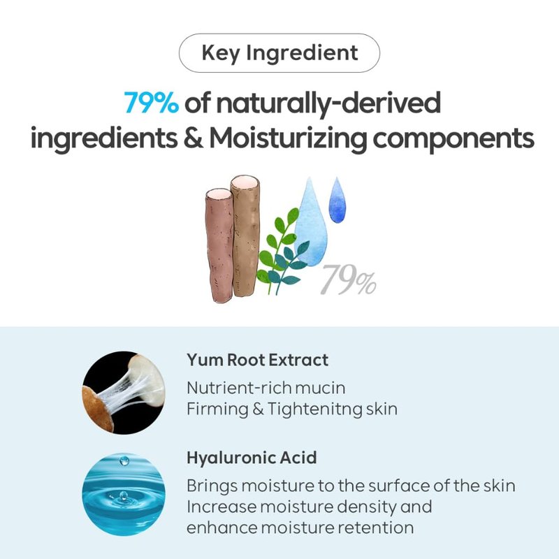 - 💧 [INGREDIENT] 79% Natural & Moisturizing Ingredients / Contains 50,000ppm of Dioscorea Japonica Root Extract & 10,000 ppm of Sodium Hyaluronate