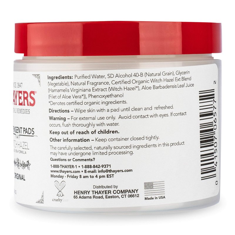 THAYERS Original Witch Hazel Astringent Pads with Aloe Vera Formula, 60 Count