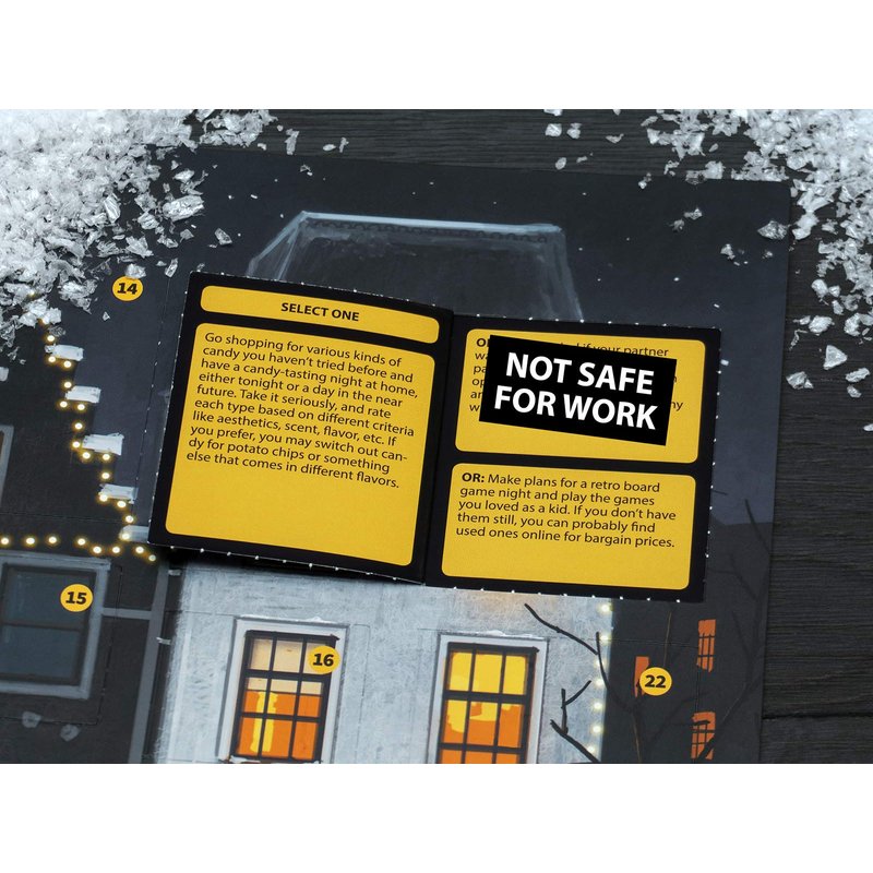 - This calendar works exactly like a classic advent calendar, except that instead of getting a piece of chocolate when you open a window you get to select between three different activities to enjoy with your partner.
