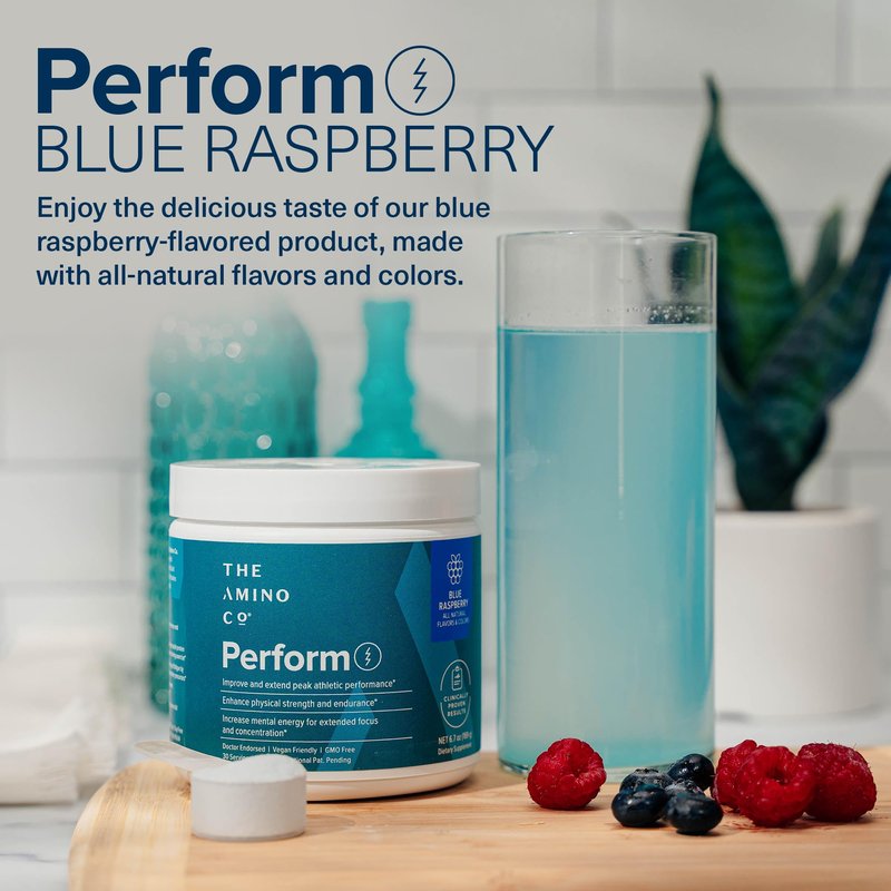 - Pure Power Boost: Amino Co Perform, a pre-workout with vegan BCAAs. Soy-free, gluten-free, Halal, and Keto Friendly. Patented formulas, with blue raspberry flavor and sweetener - An effective workout enhancement.