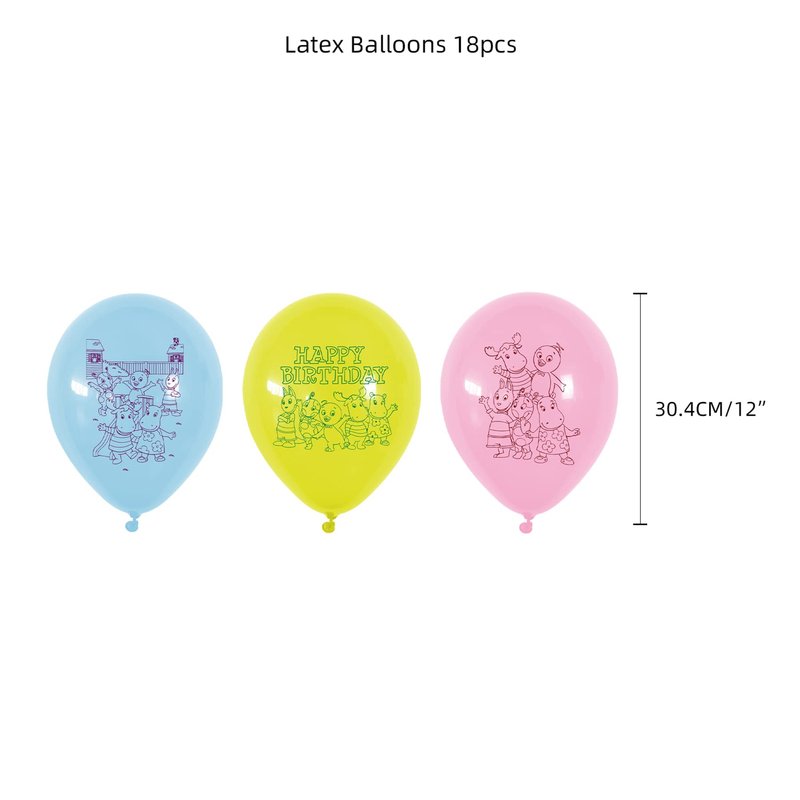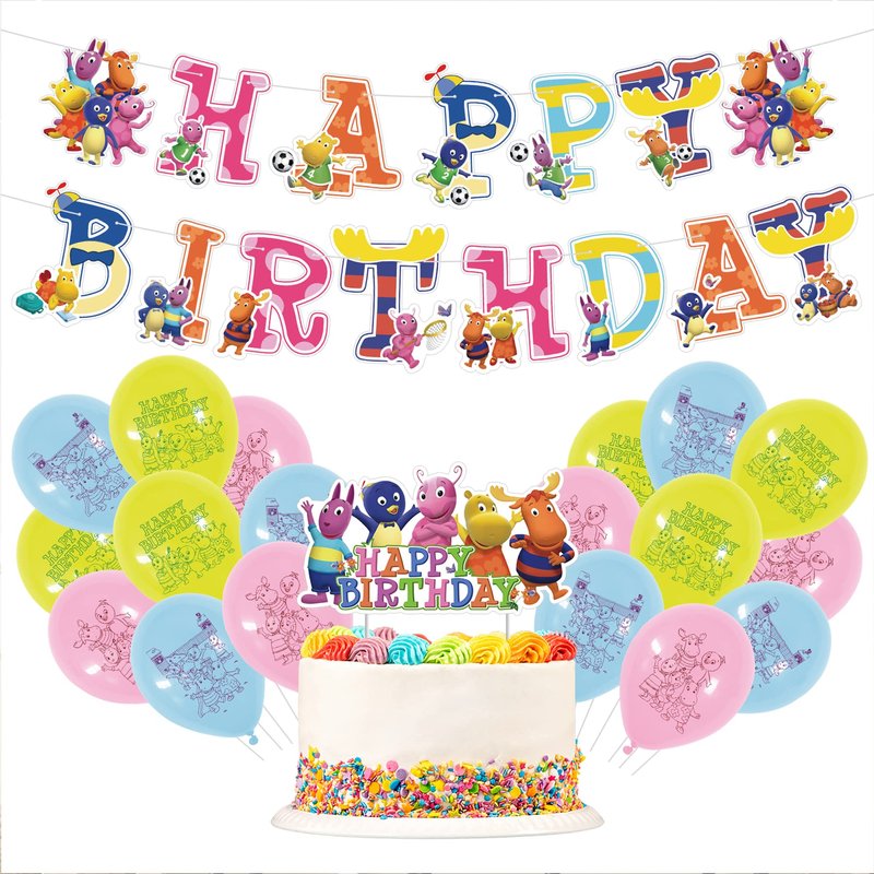 - Package includes: The backyardigans birthday party supplies set includes 1 * HAPPY BIRTHDAY banner, 18 * latex balloon (3 styles of 6 each), 1 * cake topper, 12 * cupcake topper, each accessory has cartoon elements, these decorations will add fun to your party