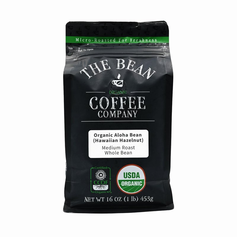 The Bean Organic Coffee Company Aloha Bean (Hawaiian Hazelnut), Medium Roast, Whole Bean Coffee, 16-Ounce Bag