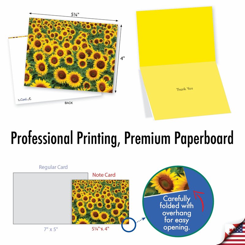 - INSIDE GREETING: "Thank You" COVER - Showcasing Big Sunny Fields of Yellow Sunflowers