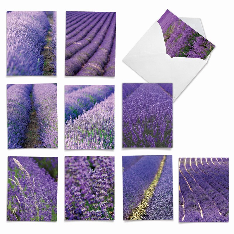 The Best Card Company 10 Assorted Thank You Notes Boxed Set 4 x 5.12 Inch with Envelopes (10 Designs, 1 Each) LAVENDER FIELDS FOREVER: 10 Assorted 'Thank You' Note Cards w/Matching Envelopes. M3017