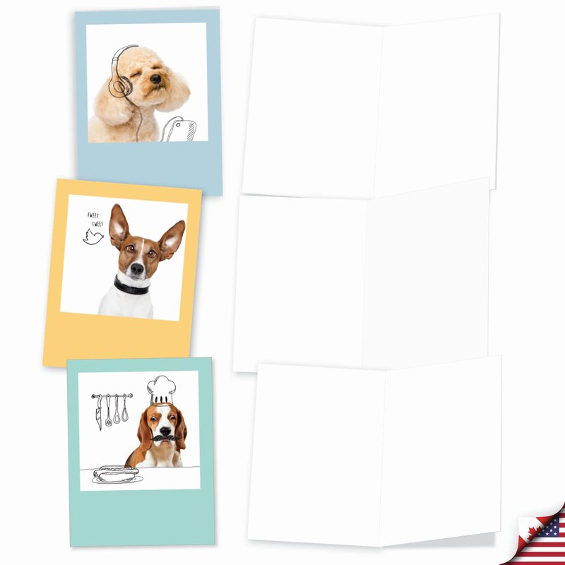Create funny and lasting memories by sending these cute and adorable, dogs and doodles greeting cards to friends and family. A bulk set of all-occasion notecards that feature a silly pup with hilarious doodle. Each card features a different puppy with anxiously awaiting to tickle your recipient's funny bones. Made and designed to spread joy and laughter to all your friends and family. The perfect greeting card for all of life's occasions. Nothing makes celebrations better than personalized greeting cards. Traditional cards with a modern and humorous twist. Specially made to provide that much needed positivity in these trying times. Grab your own copy today and send it to everyone you love and care for! Our good as gold cards are printed on thick, snow white cardstock. All of our blank notecards are made of recycled material (not papyrus, naturally). Our print on demand technology further reduces paper waste and environmental impact. The high gloss cover photo pops with quality and color, while the inside is matte, creating a smooth writing surface for your heartfelt, joyful all-occasion notes. This year, reach friends, family, and coworkers living near or far, as every greeting card ships with a mailing envelope. Bulk notecard assortments and sets arrive in a reusable box. All boxed notecard sets are easily stored in a work office desk, ready to customize for your next life occasion. Our all occasion cards are perfect for birthdays, christmas and holidays, and writing heartfelt thank yous. This year, leave a big impression on your recipient, no matter the occasion. There are beautiful designs, and funny greetings, waiting for you!