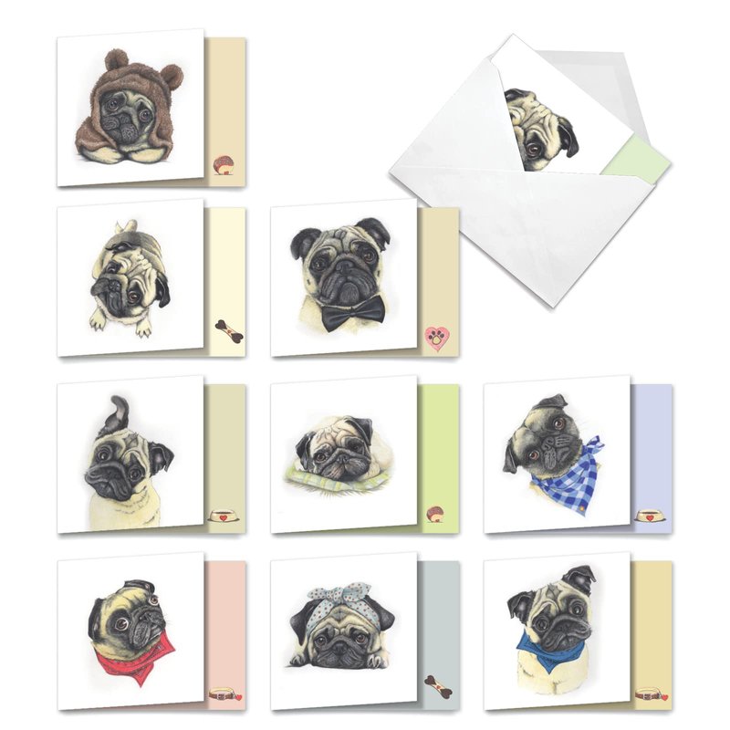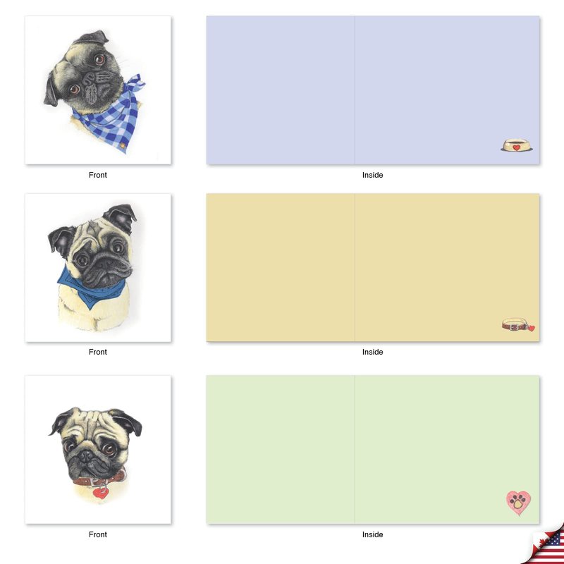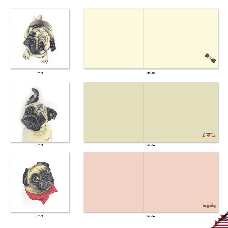 - INSIDE GREETING: The inside is ungreeted, making this perfect for your customized notes for all occasions! COVER - [images of hand drawn pugs]