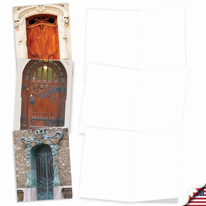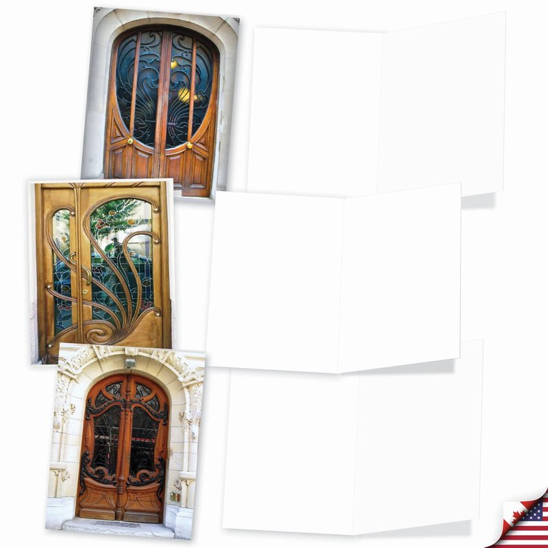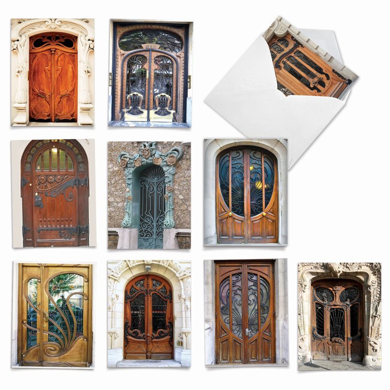 The Best Card Company - 10 Blank Note Cards Boxed (4 x 5.12 Inch) - Architecture, Assorted All Occasion Cards - Art Nouveau Doors M4624OCB-B1x10