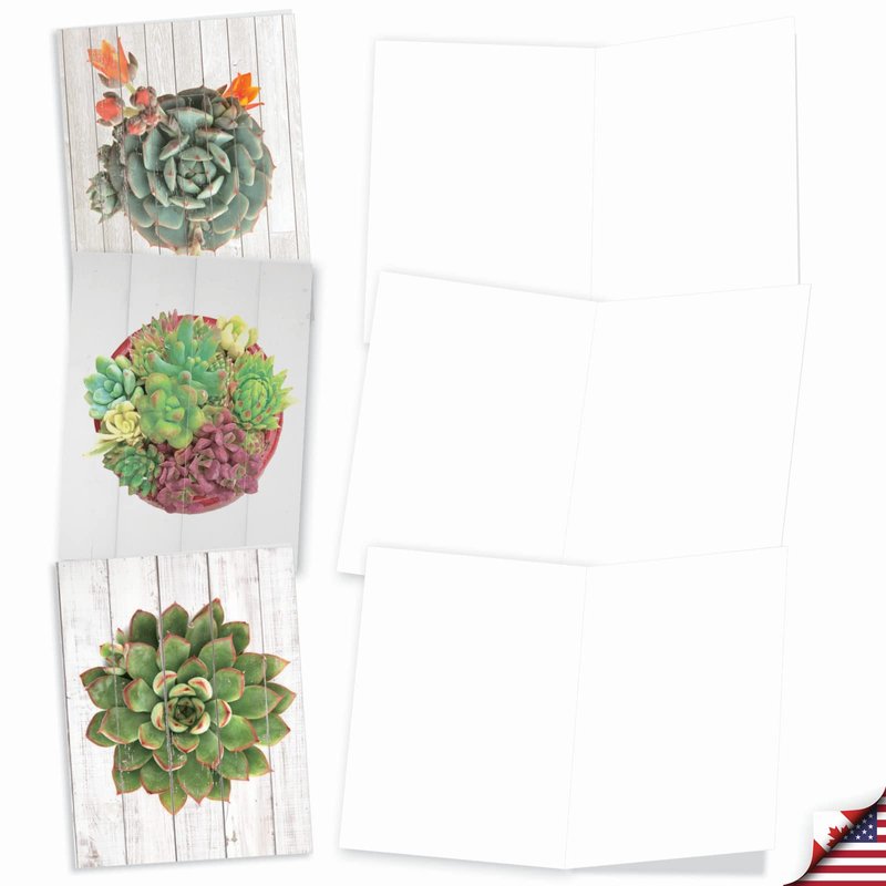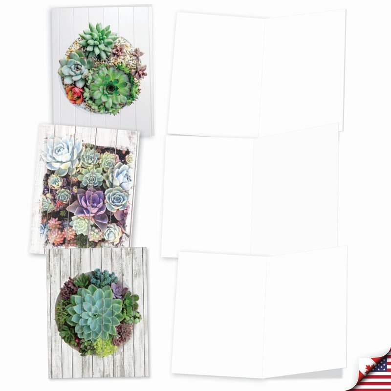 The Best Card Company - 10 Blank Note Cards with Envelopes (4 x 5.12 Inch) - Bulk All Occasion Cards Boxed - Shiplap Succulents AM6438OCB-B1x10