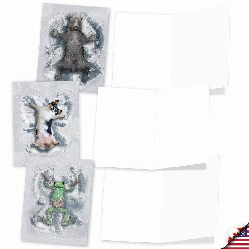 - INSIDE GREETING: The inside is ungreeted, making this perfect for your customized notes for all occasions! COVER - [assorted critters making snow angels]