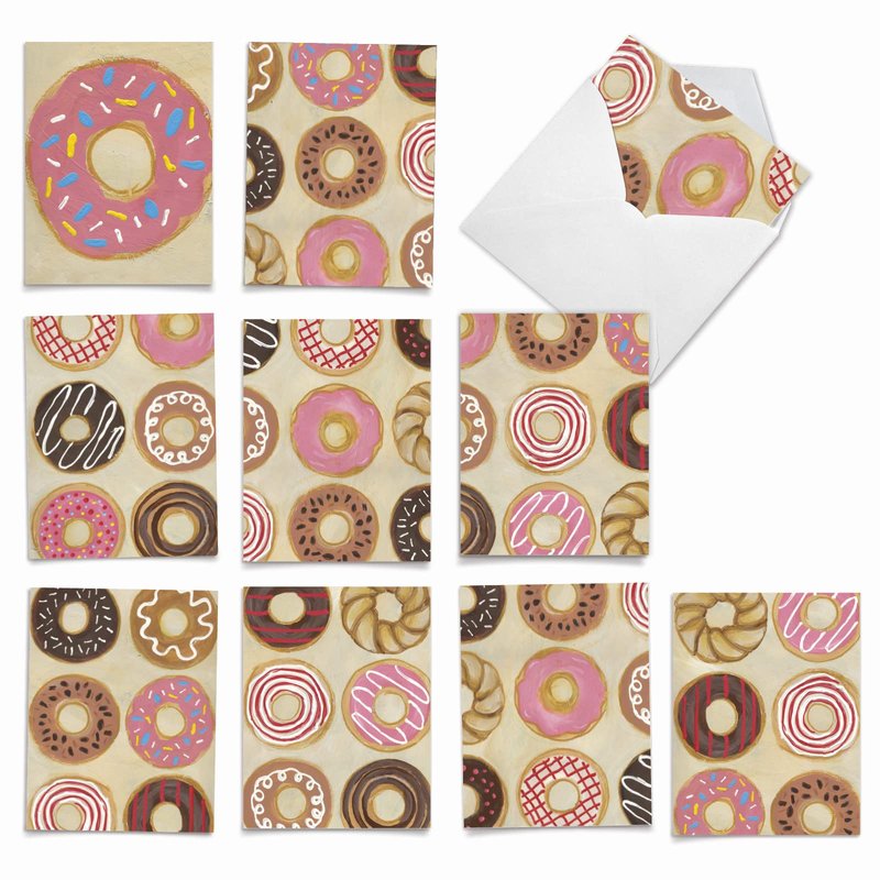 The Best Card Company - 10 Boxed All Occasion Cards with Envelopes (4 x 5.12 Inch) - Colorful, Fun Note Cards Assorted - Time to Send the Donuts M6021