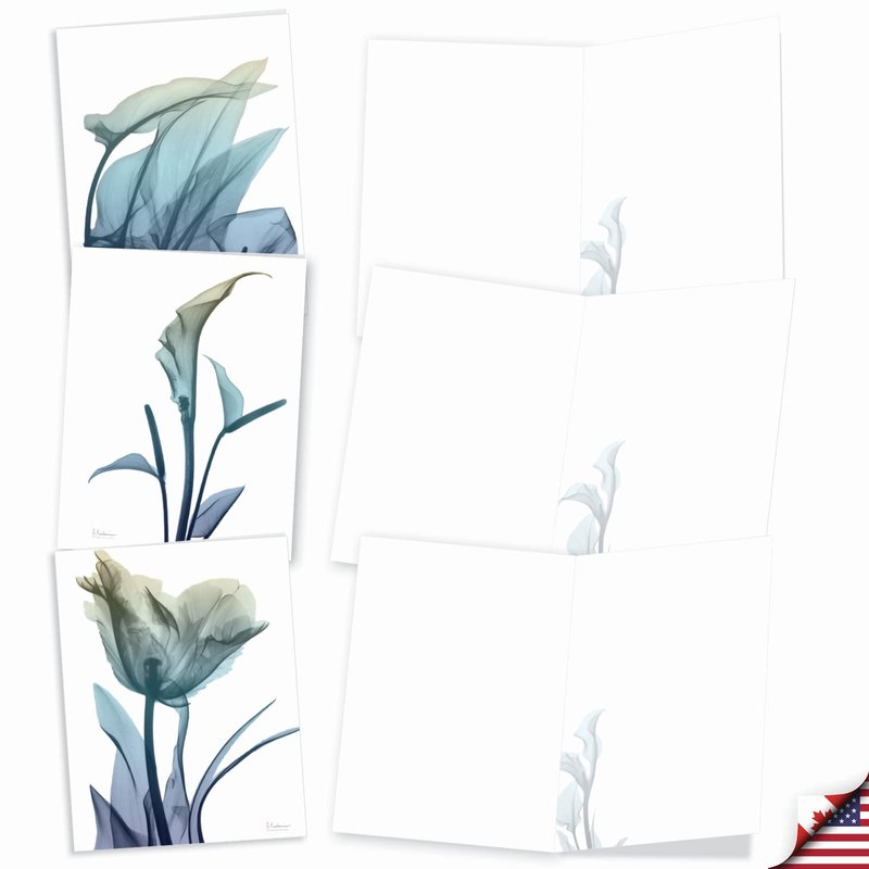 Flowers are great symbols of peace and love. They remind us of lots of different memories in our lives both happy and sad. They are used to console and to celebrate as well. A stark contrast of purpose that is varied as the species of flowers itself. Throughout the world diverse cultures have different use and beliefs when it comes to this amazing plant. Regardless of which, we know that floral blooms make our hearts happy. Our 10-piece card pack will do just the same. Featuring several lovely designs of iridescent flowers in blue, purple and beige color. Every image masterfully painted to give it that surreal feeling. Go ahead and order this magical set now. Just add your own personal touch by writing down a nice message inside. Our good as gold cards are printed on thick, snow white cardstock. All of our all-occasion note cards are made of recycled material (not papyrus, naturally). Our print on demand technology further reduces paper waste and environmental impact. The high gloss cover photo pops with quality and color, while the inside is matte, creating a smooth writing surface for your heartfelt notes. This year, reach friends, family, and business coworkers living near or far, as every greeting card ships with a mailing envelope. Bulk notecard assortments and sets arrive in a reusable box. All assorted cards for kids and parents are easily stored in an office desk, ready to customize for your next life occasion. This year, leave a big impression on your recipients. These all occasion cards are great for birthday gifts, thank yous, and hello cards. There are beautiful designs, and funny greetings, waiting for you!