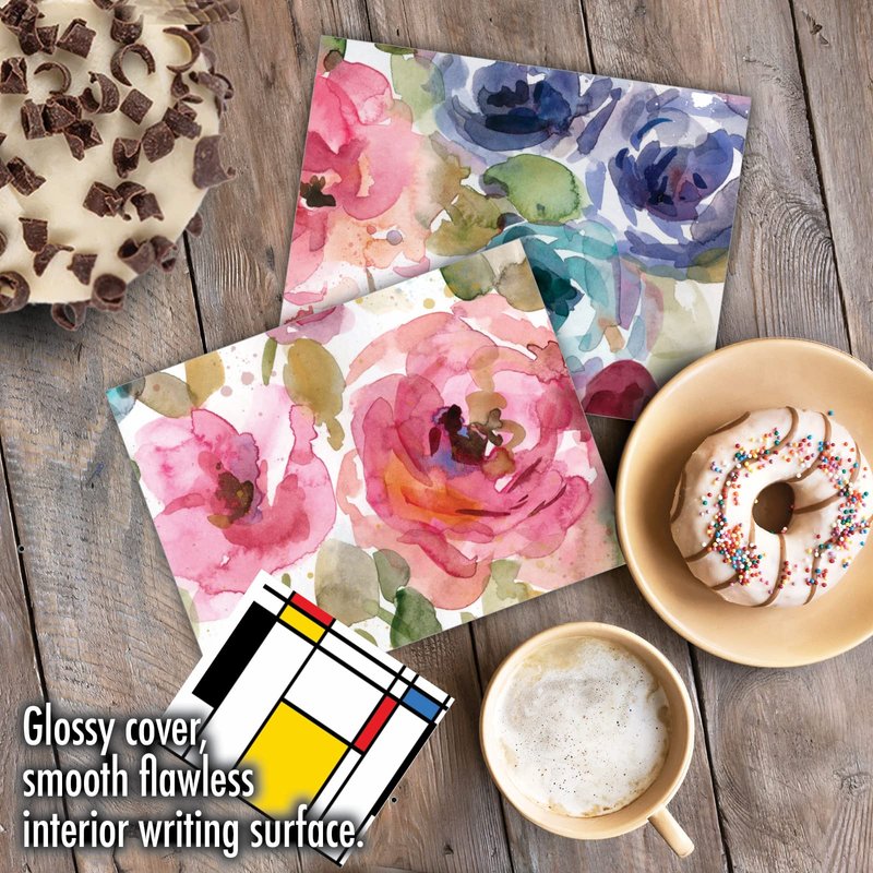 - INSIDE GREETING: The inside is ungreeted, making this perfect for your customized notes for all occasions! COVER - Featuring a Larger Painting of Pink and Purple Watercolor Flowers That is Cropped into Smaller Images,