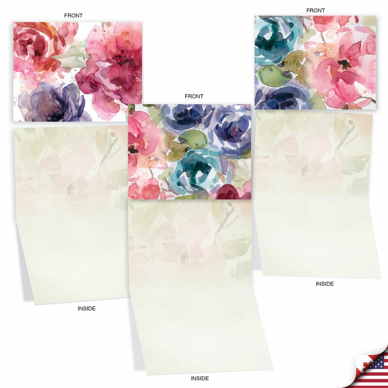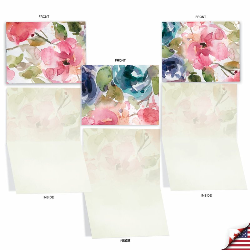 The Best Card Company - 10 Boxed Note Cards with Flowers - Blank Assorted Floral Notecards Bulk (4 x 5.12 Inch) - Lush Blooms M6591OCB