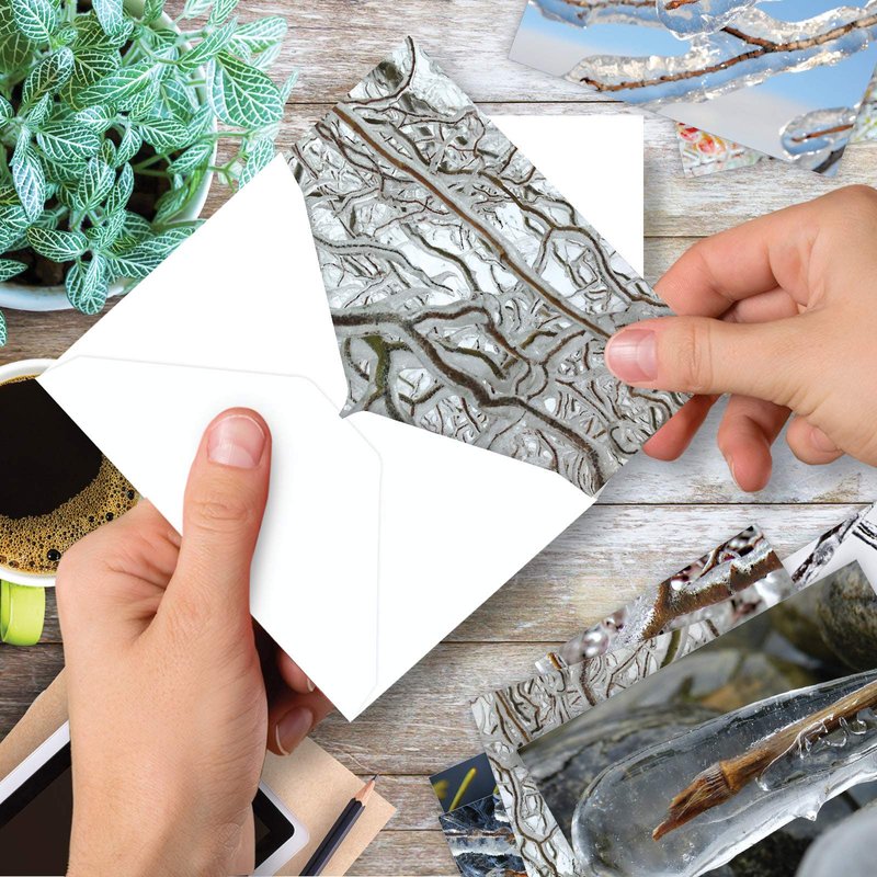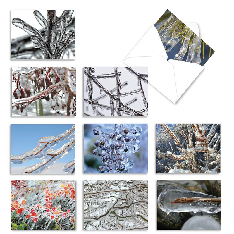 The Best Card Company - 10 Bulk All Occasion Note Cards (4 x 5.12 Inch) - Blank Assorted Cards Set, Nature Plants and Gardens - Nature on Ice M3279