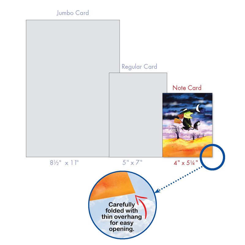 - MINI GREETING CARD SET – Our (4 x 5.12 Inch ) note cards are smaller than a typical 5x7. Miniature sized notecards for a scary yet sweet setting. Covers feature scared cat, skeleton skull, jack o lanterns, witches on broomstick, scarecrow and more! Fun images of spooky pumpkins and holiday decoration for adults and children of all ages. We offer a wide assortment of designs and art styles, offering a unique match for men and women looking for the right notecard for their special message.